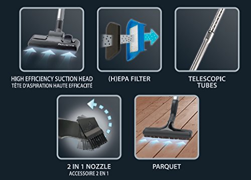Nach der Optik sollte die Leistung im Vordergrund stehen. Der Rowenta ro5349ea Compacteo Ergo erreicht eine maximale Eingangsleistung von 2000 Watt und ist damit vielen anderen Staubsaugern überlegen. Durch diese hohe Leistung wird ein starker Sog erzeugt, welcher wiederum eine gute Saugkraft garantiert. Gearbeitet wird dabei mit der Zyklonen-Technik, wodurch Sie sich keine Gedanken mehr über einen Staubsaugerbeutel machen müssen. Sie können mit wenigen Handgriffen den Behälter entnehmen, der Ihnen einen Inhalt von 1,5 Liter bietet, und ihn anschließend entleeren. Interessant ist, dass Sie den Staubsauger auf allen bekannten Oberflächen verwenden können, doch gerade Teppich und Hartböden zeigen sich von ihrer besten Seite.